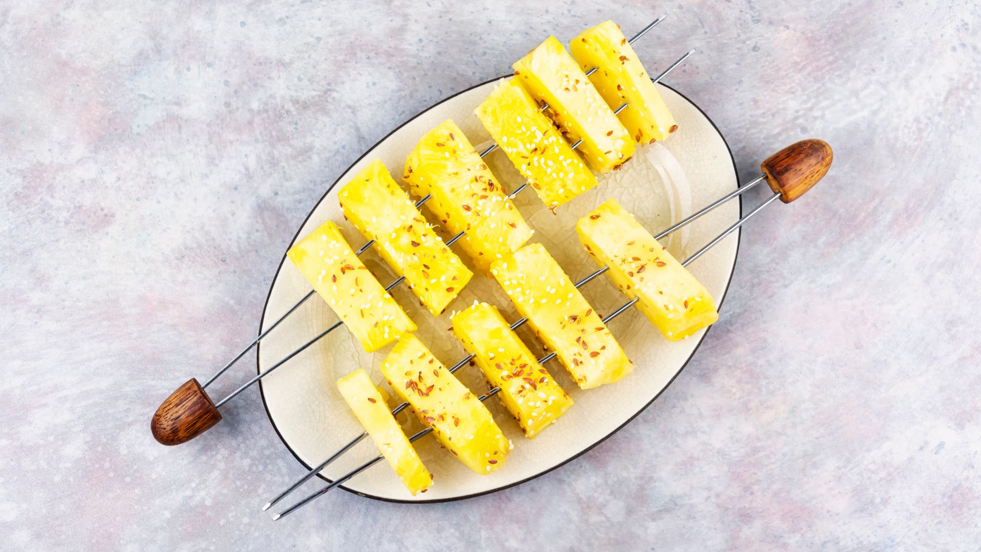 - In a bowl, toss pineapple chunks with brown sugar, cinnamon, and lime juice.