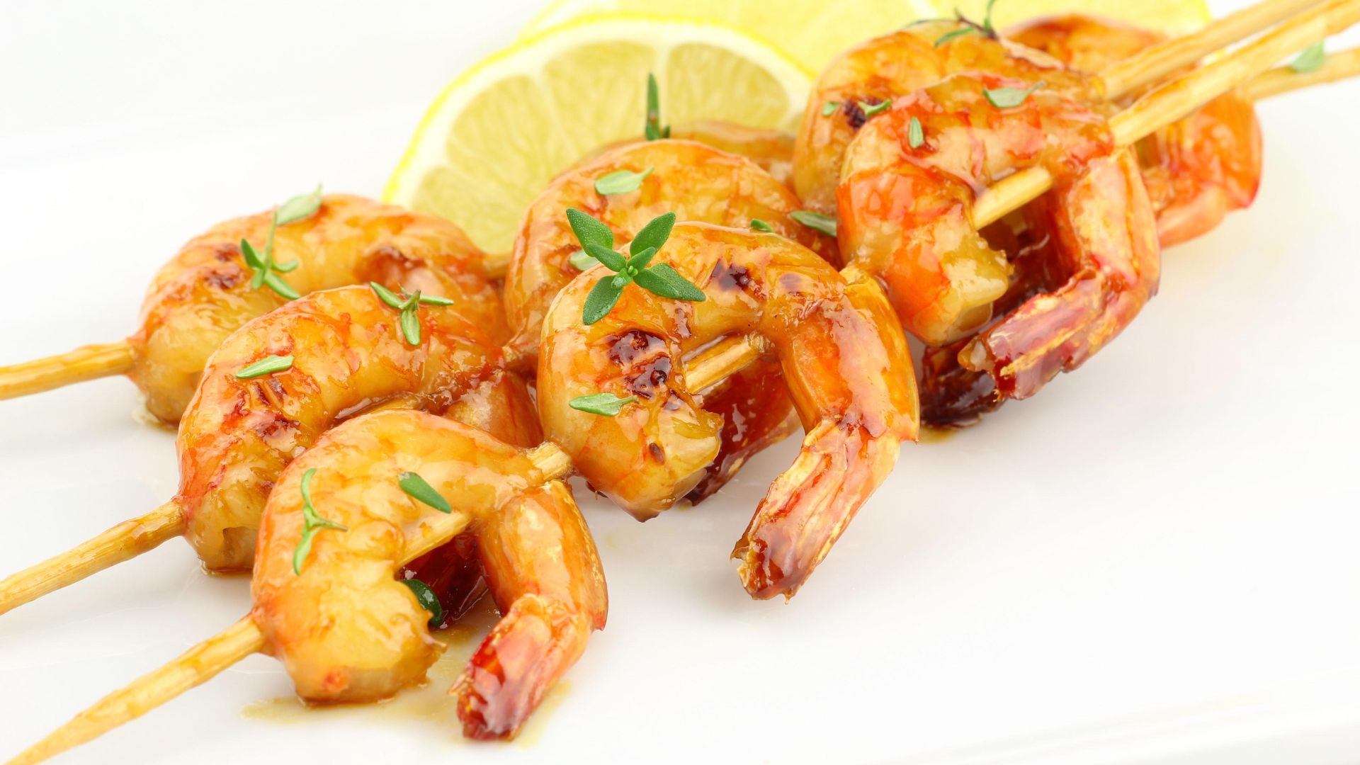 - Once ready to cook, preheat a barbeque on medium to high heat. Thread prawns onto skewers and grill, turning occasionally, until charred and cooked through (around 4-5 minutes on each side).