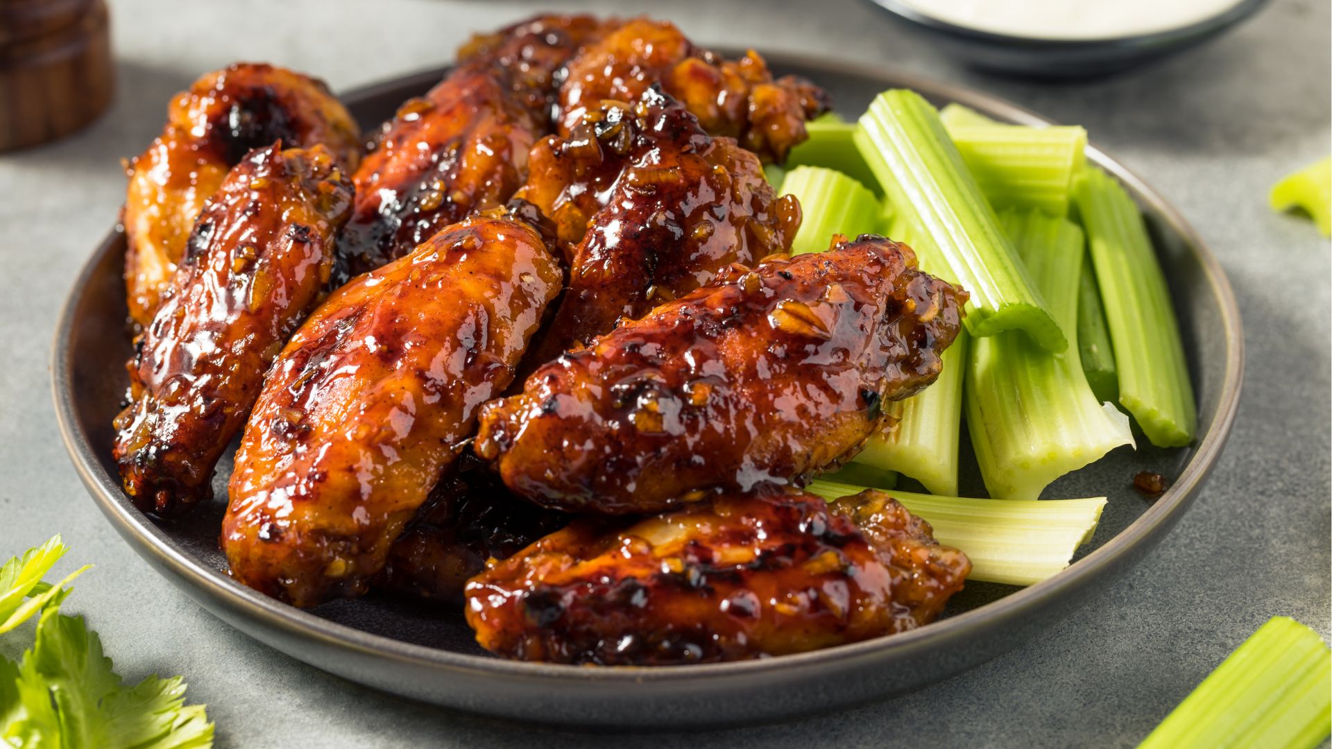 - Once the wings are baked, transfer them to a large bowl and pour the hot honey sauce over them until they are completely coated.