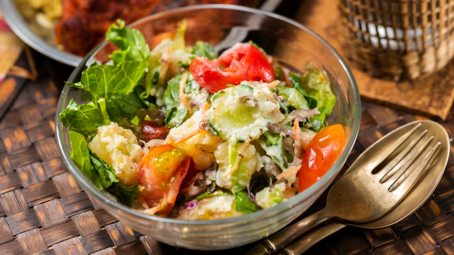 Use leafy greens or shredded cabbage as a base for bowls and tacos instead of bread, rice, or heavy bases. Try Portobello caps or large lettuce leaves as burger buns or wraps. A big bed of mixed greens makes meals feel larger and more satisfying.