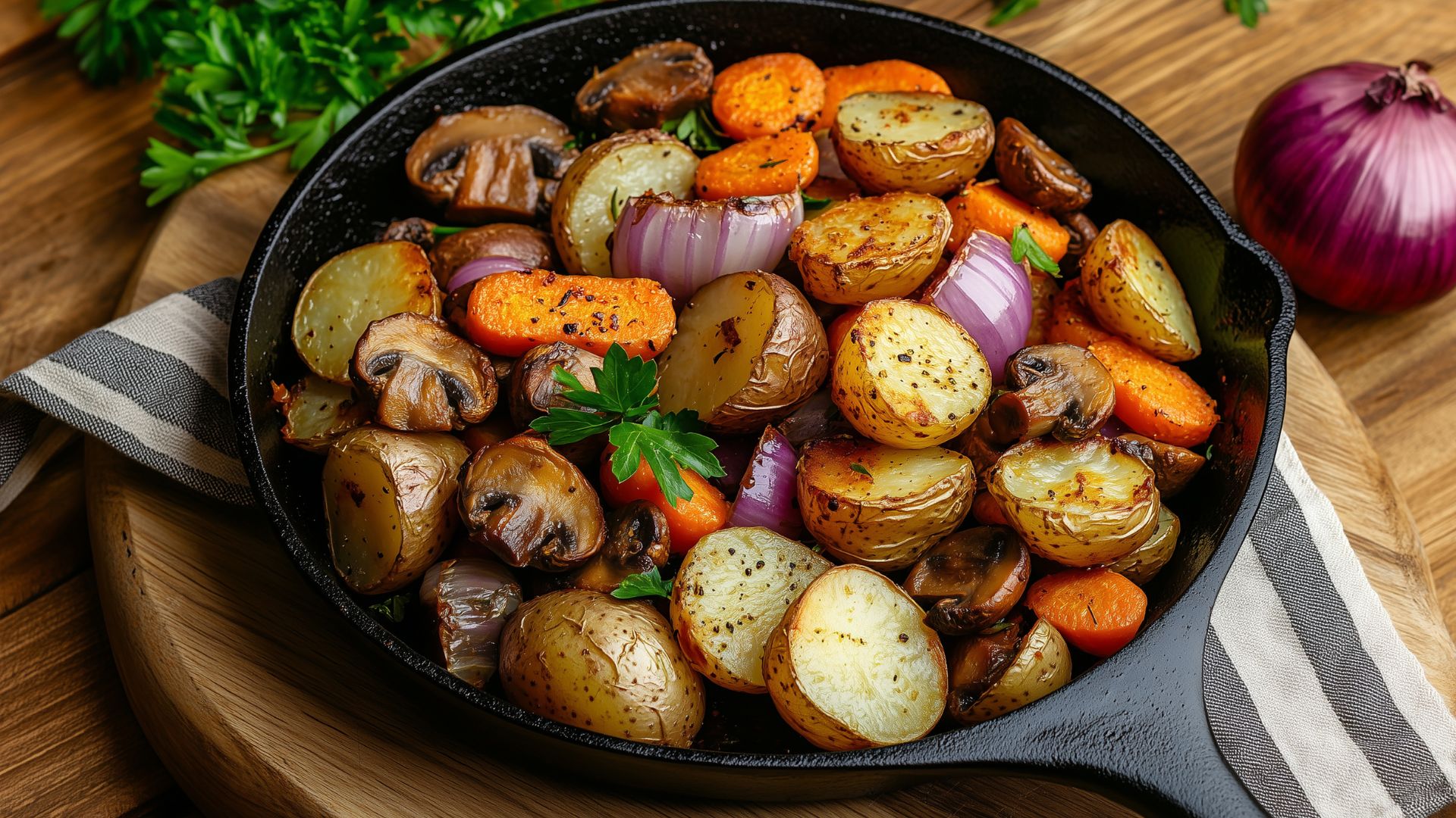 Roast vegetables with olive oil, salt, pepper, and a touch of honey or balsamic to caramelize natural sugars. Use bold seasonings — garlic, smoked paprika, lemon zest, soy sauce, or chili flakes — to enhance flavor. Finishing with a squeeze of citrus or a sprinkle of toasted seeds adds brightness and crunch.